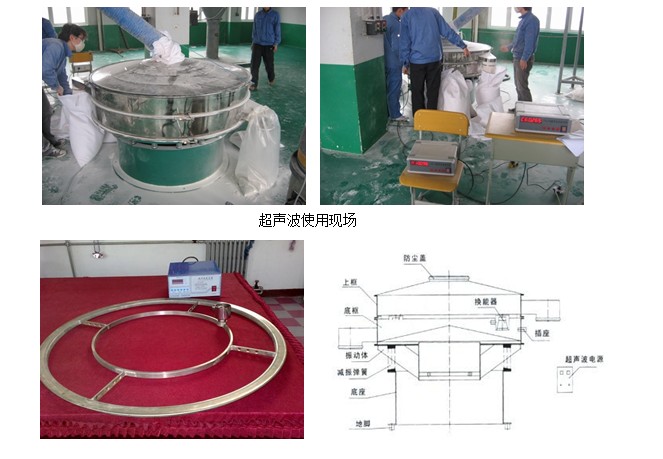 超声波振动筛是在普通三次元振动筛的基础上,叠加一个低振幅、高频率的超声波筛分系统,以改善超微细粉体的筛分性能,是当前网孔堵塞的有效解决办法。